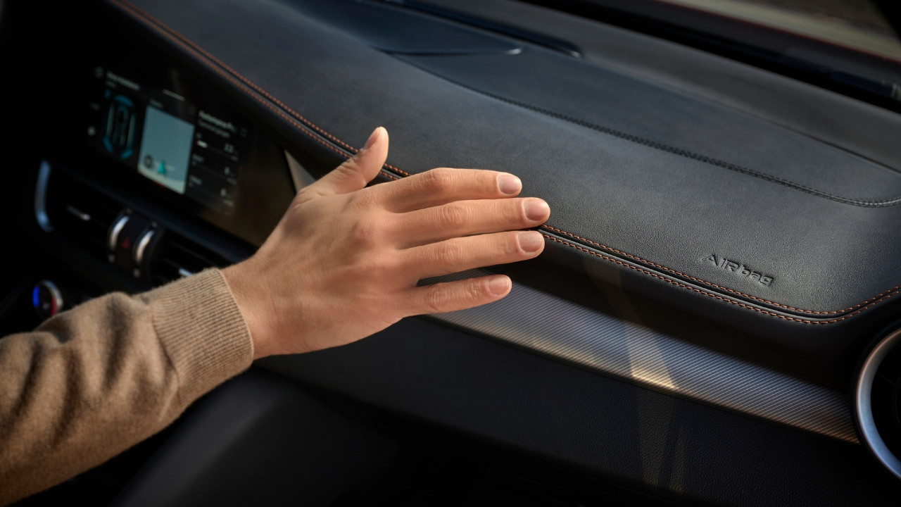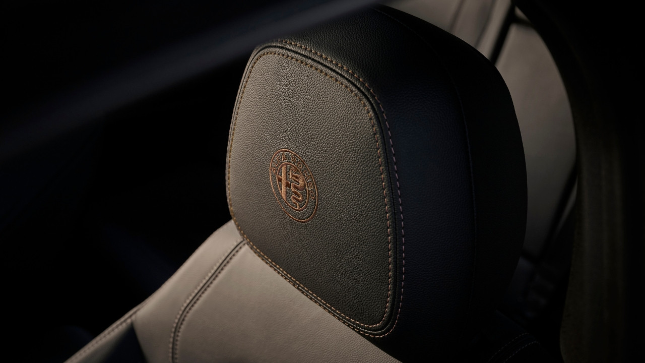 Interieur in Alcantara/Leder mit braunen Nähten und gesticktem Logo